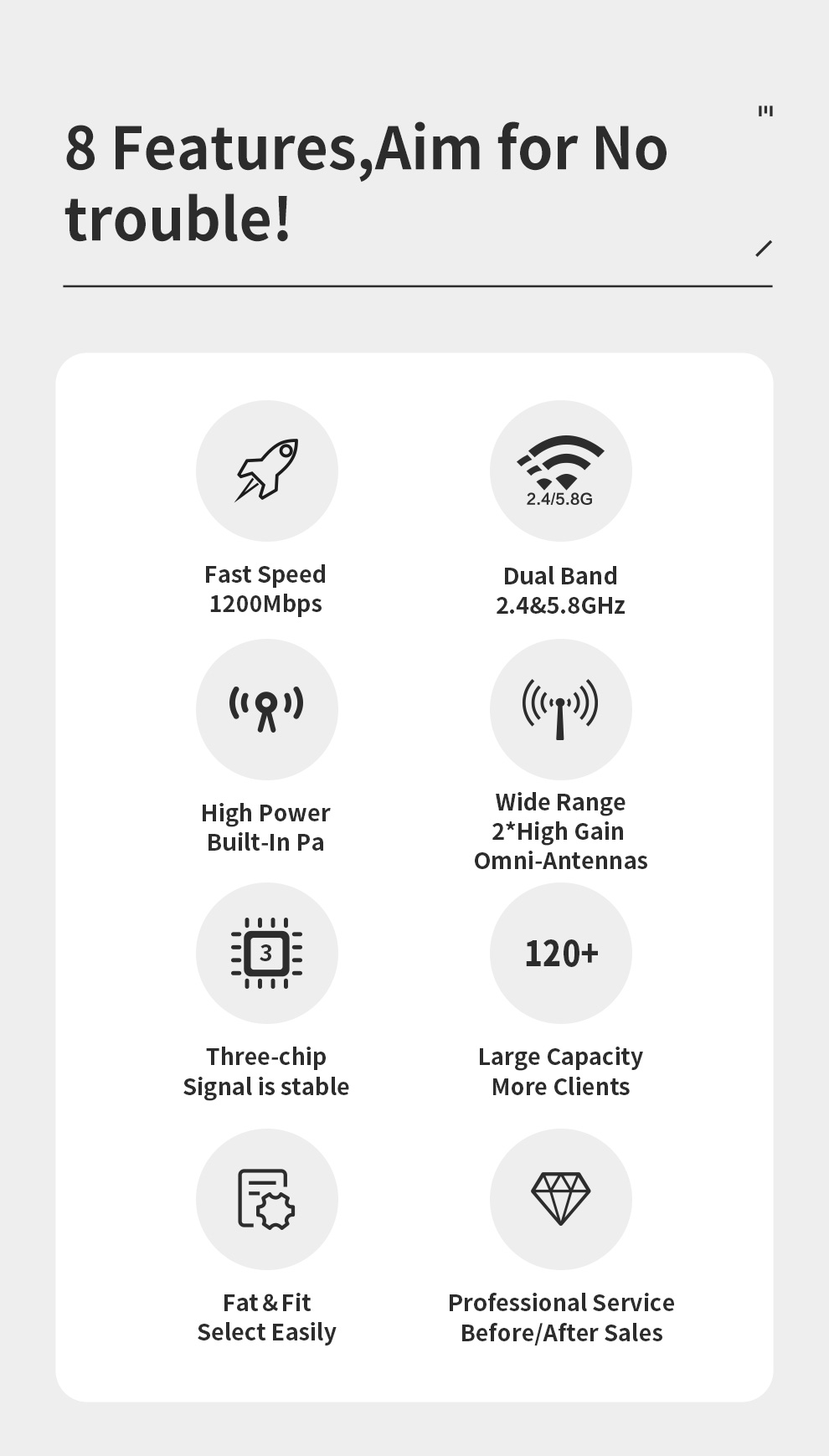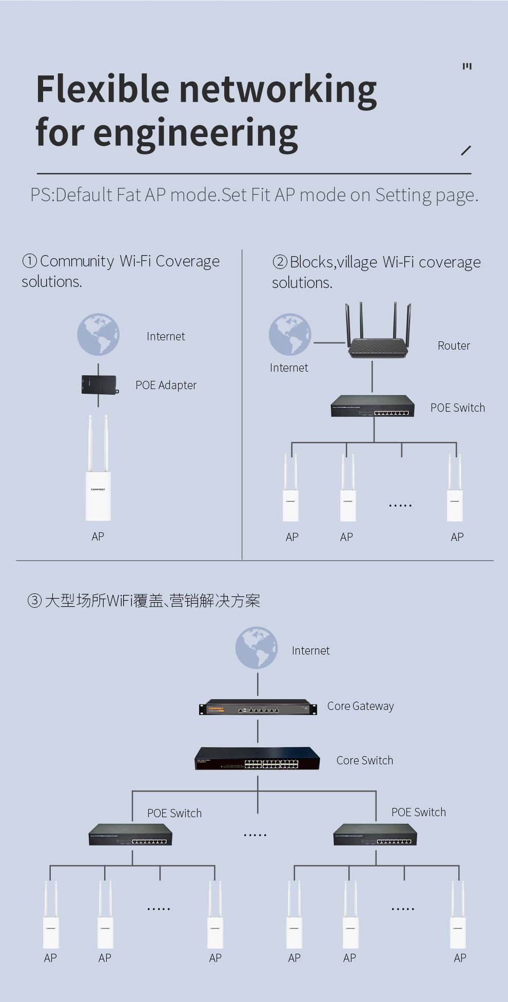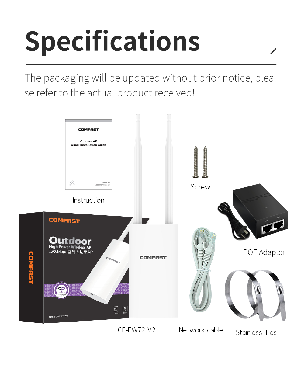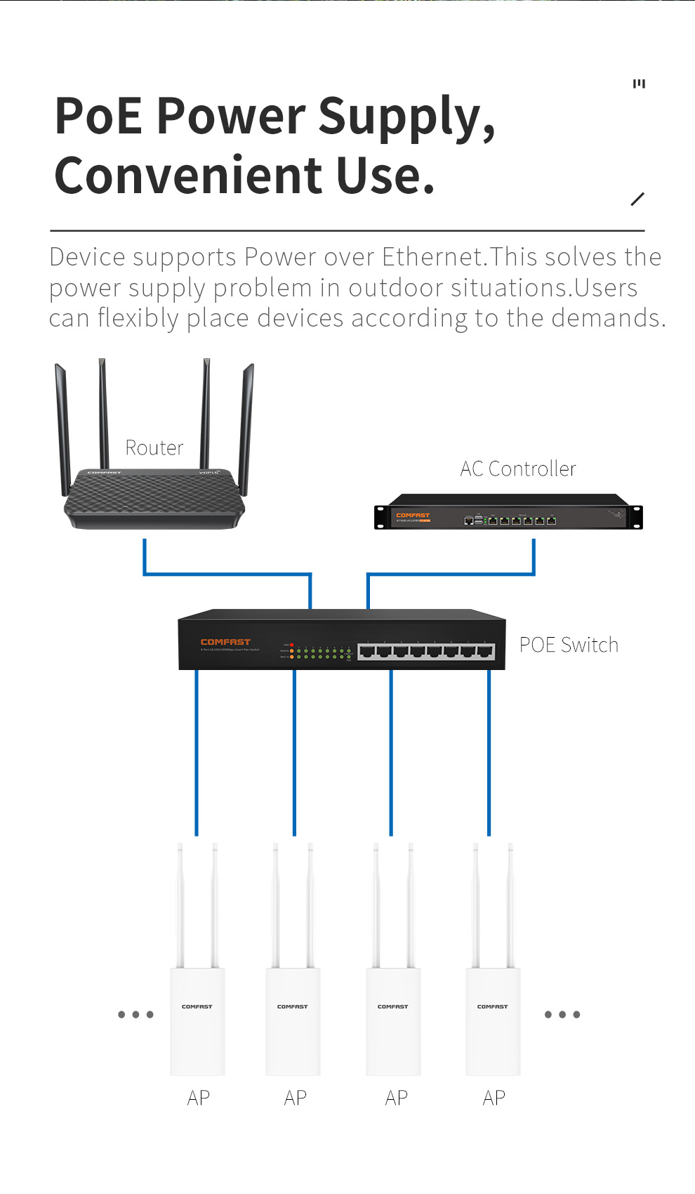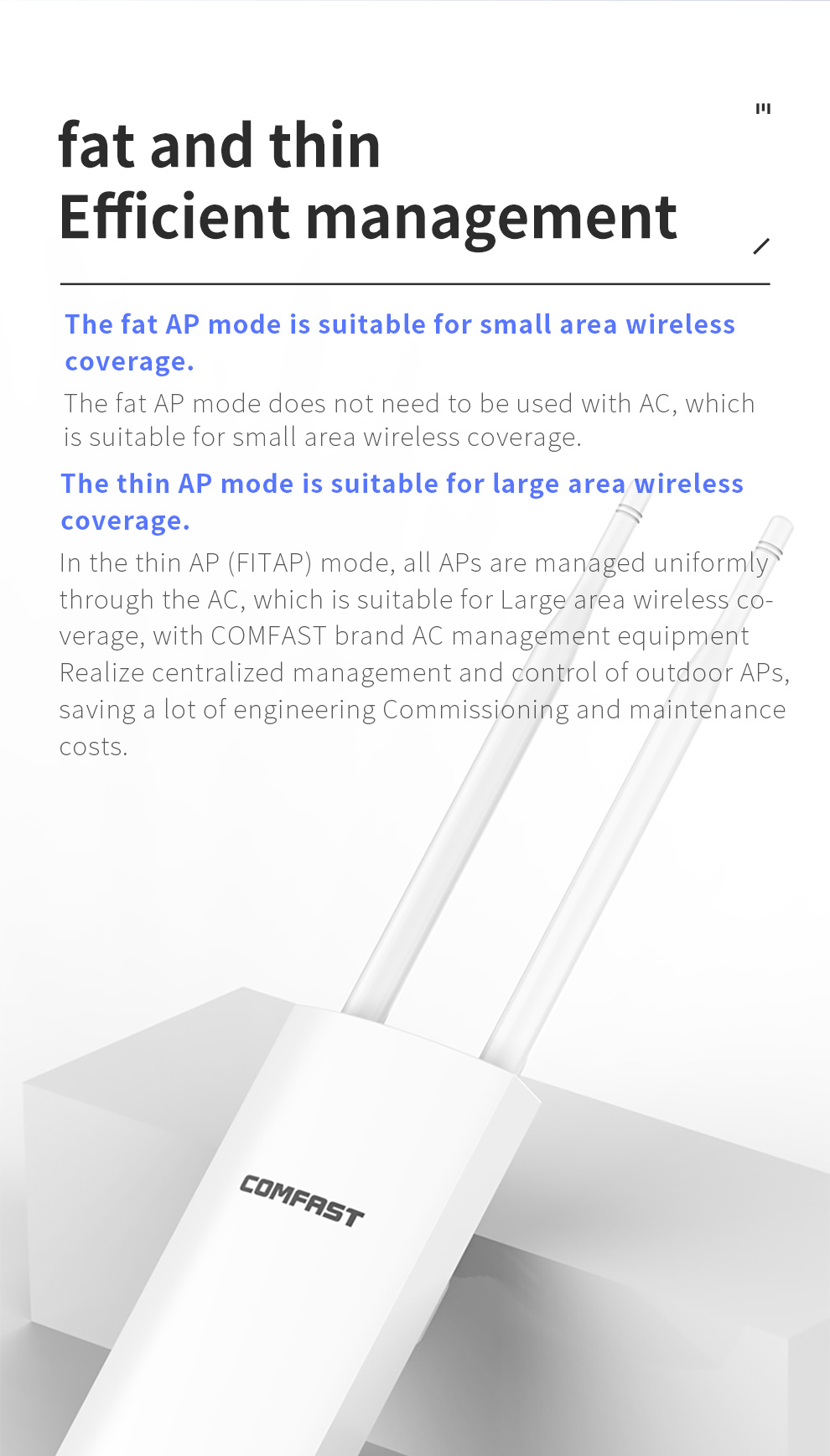 *To provide as accurate product information, specifications, and features as possible, COMFAST may periodically adjust and revise the text descriptions, image effects, and other content on this page to ensure alignment with actual product performance, specifications, packaging, and accessories. Should such adjustments or revisions become necessary, no prior notice will be provided.