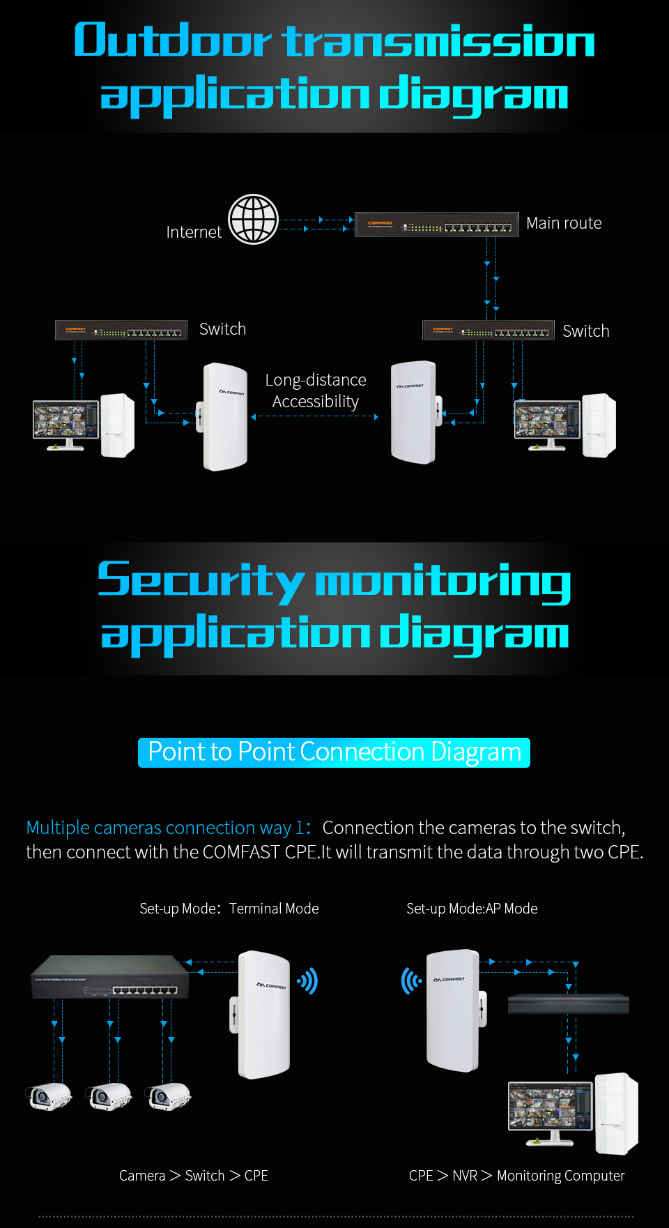 *To provide as accurate product information, specifications, and features as possible, COMFAST may periodically adjust and revise the text descriptions, image effects, and other content on this page to ensure alignment with actual product performance, specifications, packaging, and accessories. Should such adjustments or revisions become necessary, no prior notice will be provided.