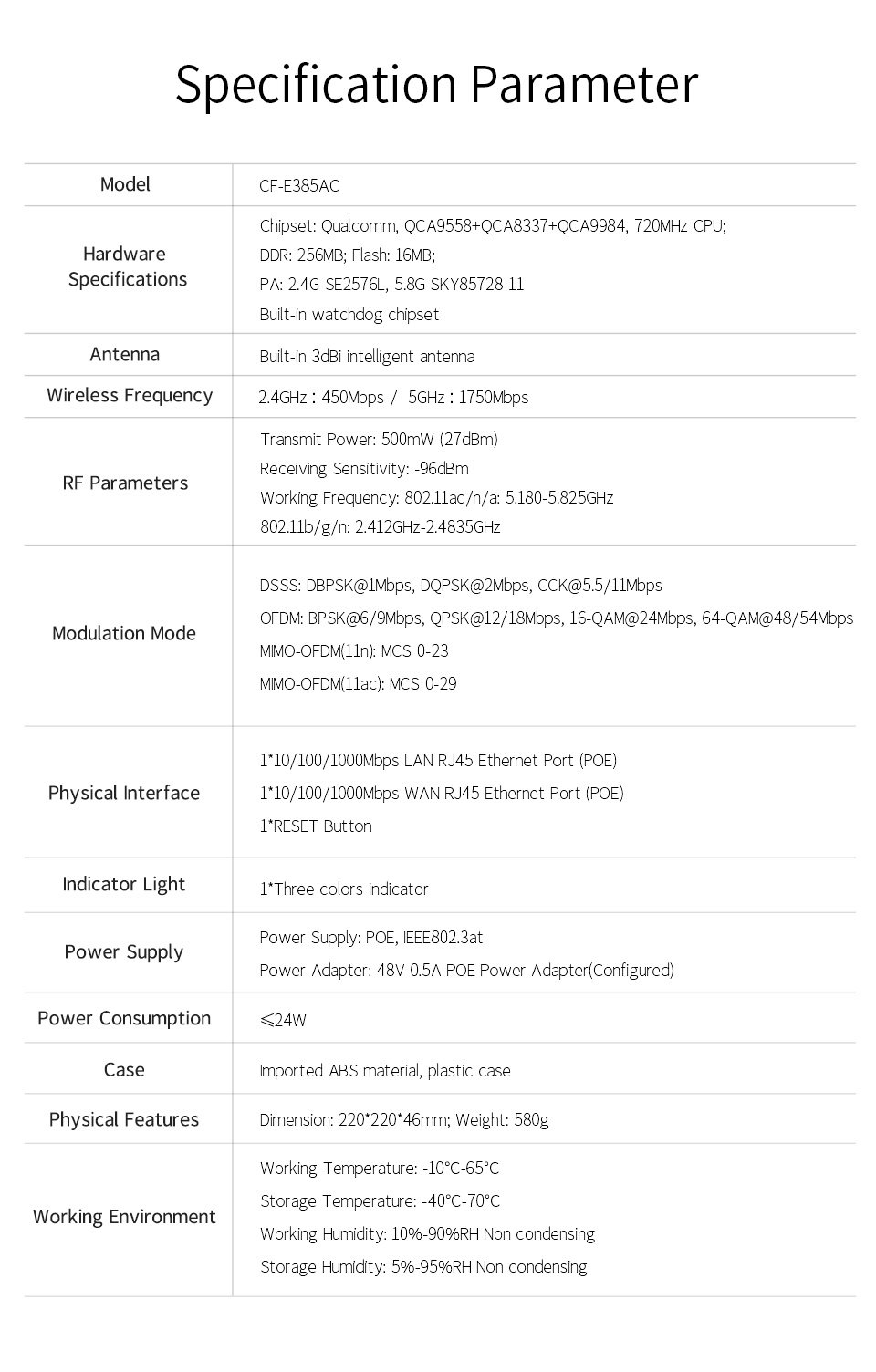 Chipset | Qualcomm QCA9558 + QCA8337 + QCA9984, 720MHz, telecom-grade processor |