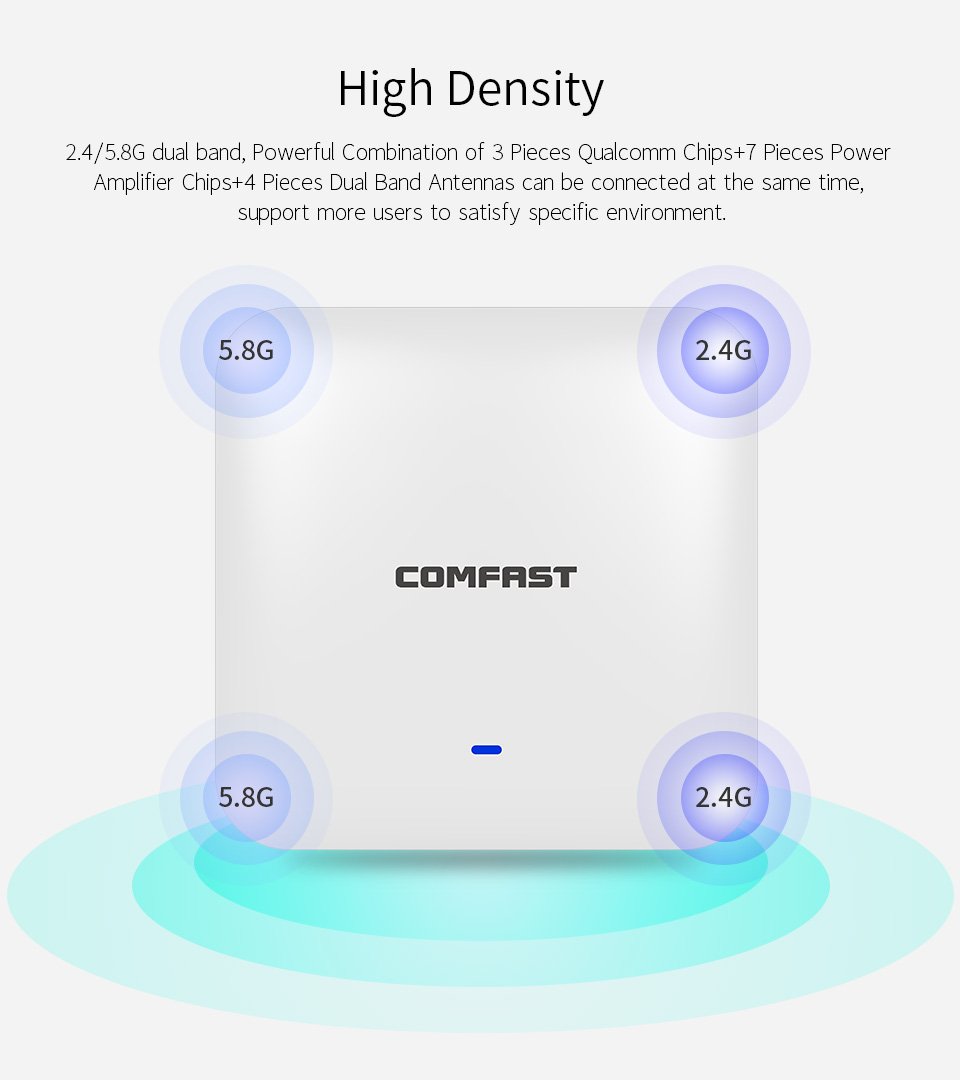 The CF-E385AC supports up to 220+ devices with dual-band 11AC, doubling the client capacity of standard APs in high-density environments.