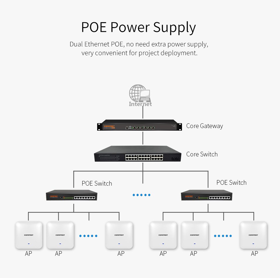 Physical Ports | 1 x 10/100/1000Mbps LAN RJ45 port (PoE support) 1 x 10/100/1000Mbps WAN RJ45 port (PoE support) 1 x RESET button |