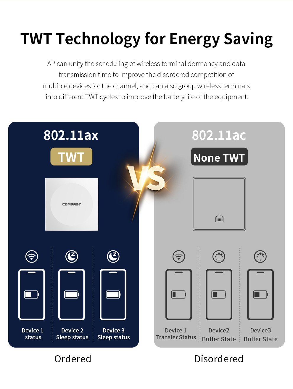 The CF-E593AX is a high-performance WiFi 6 panel AP with dual-band speeds up to 3000Mbps. It features advanced Mesh technology for seamless coverage and roaming, making it ideal for large indoor areas like malls, hotels, and schools.
