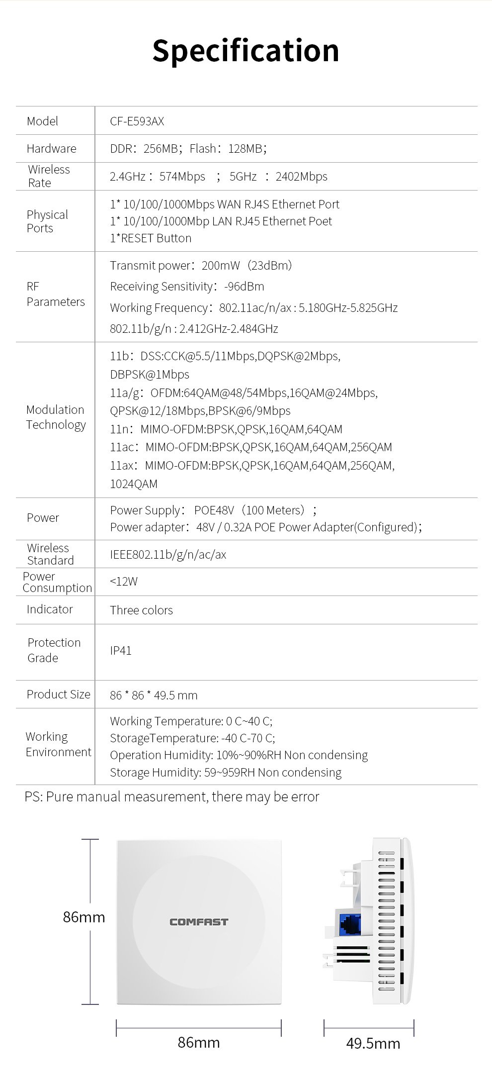 • 48V POE Power: Safe and reliable power supply.