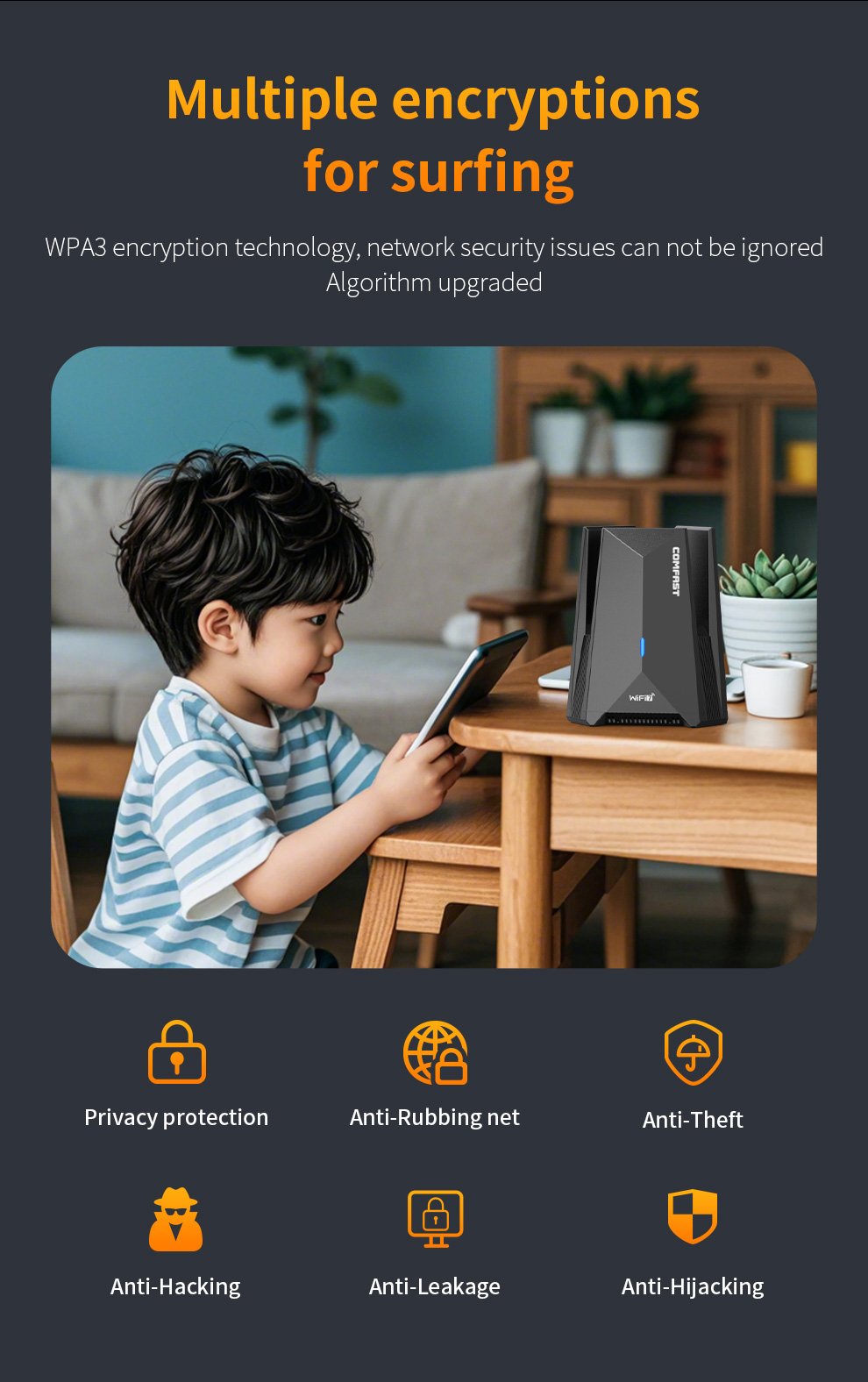Multi-band support: 2.4/5/6GHz for seamless high-speed internet